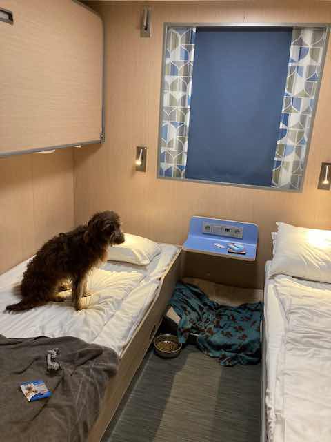 Had a reasonable nights sleep - Millie stayed in her bed! Maybe she felt happier closer to the ground given the movement and sounds of the ferry.